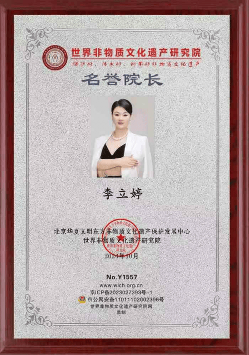 2024年10月荣获世界非物质文化遗产研究院名誉院长。